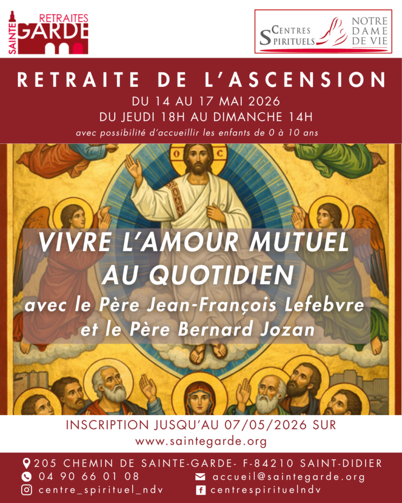 Sainte Garde accueille en ses lieux le Centre spirituel, la Catéchèse, le Studium de Notre-Dame de Vie, et offre de nombreuses propositions au travers de ses 5 pôles d’activité : Accueil, Retraites, Formation, Colloques, et Art et Culture.